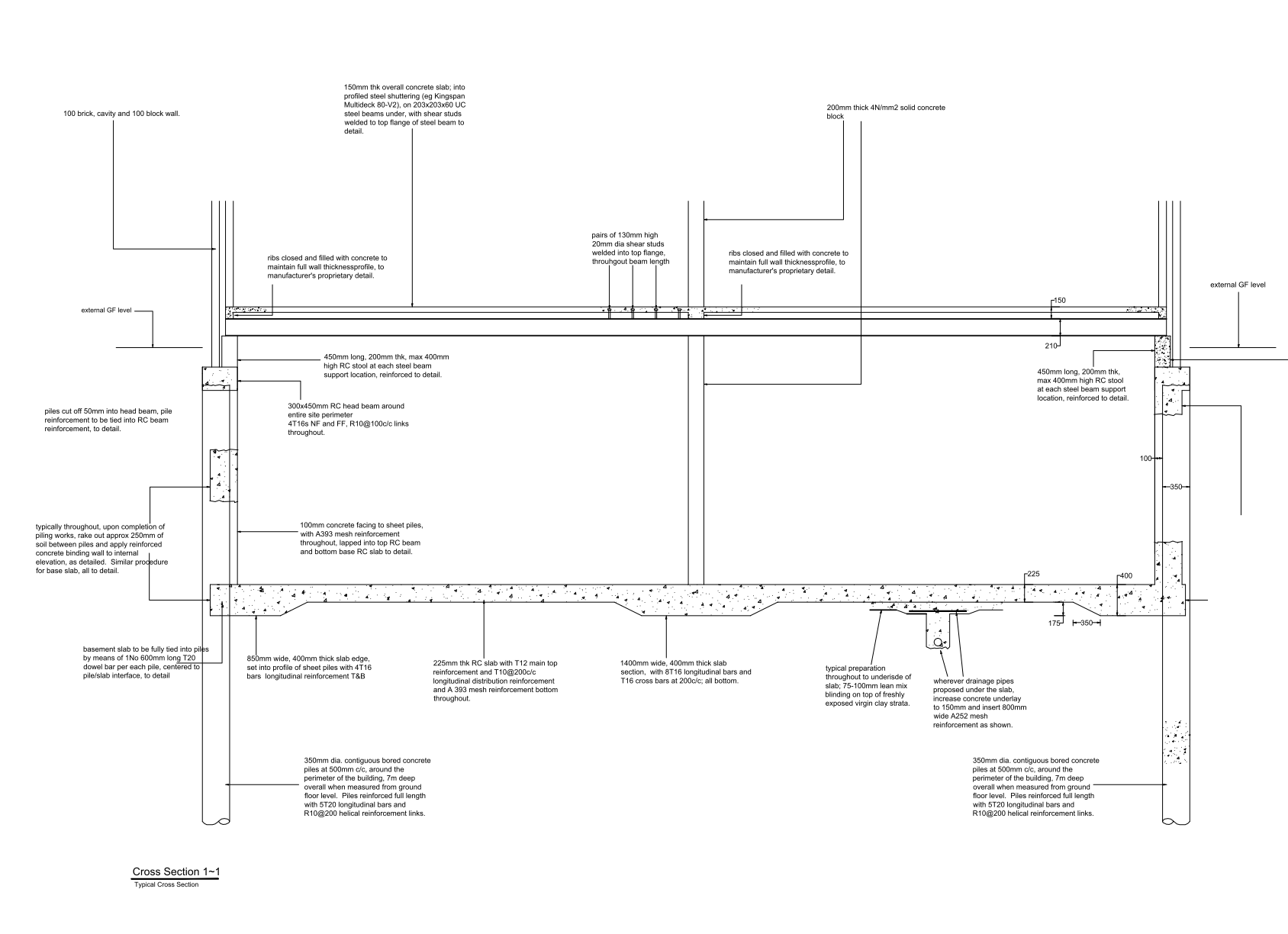 Arthur Road project in Wimbledon comprised a demolition of an existing building and replacement with a pair of semi detached family homes. Due to the proximity of a number of neighbouring properties, as well as some mature vegetation, the basements were constructed with contiguous piling, and the upper levels with simple steel framing with steel shuttering concrete floors and timber floors.
