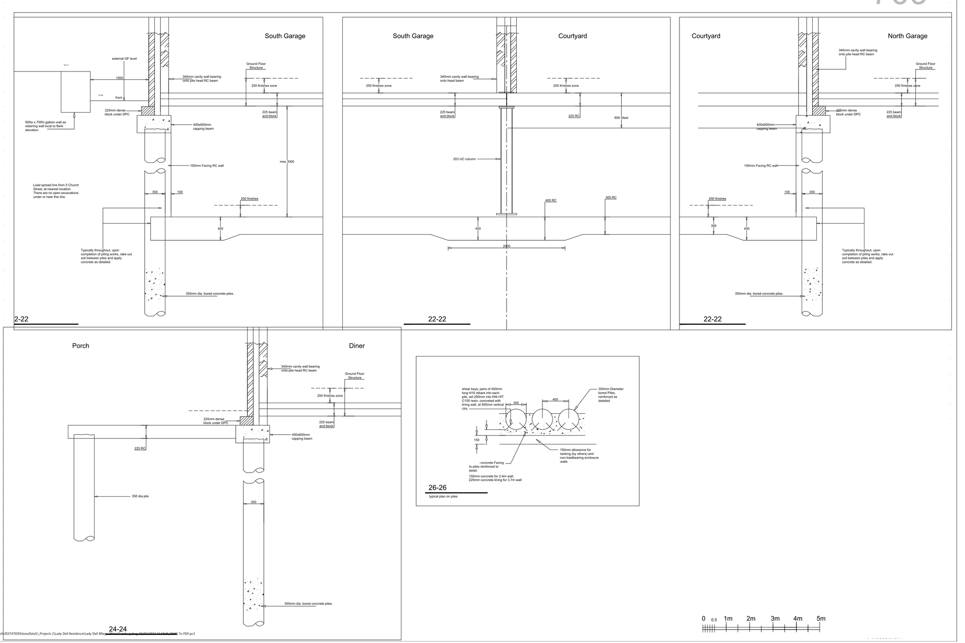 Lady Dell project was a residential new build replacing a historic farm. The ground conditions dictated that the foundations be piled. Some basement accommodation was also incorporated, a small basement of three meter depth and the larger basement of five meter depth. The five meter deep basement also had to accommodate a two story coach house to be built on top of it.
