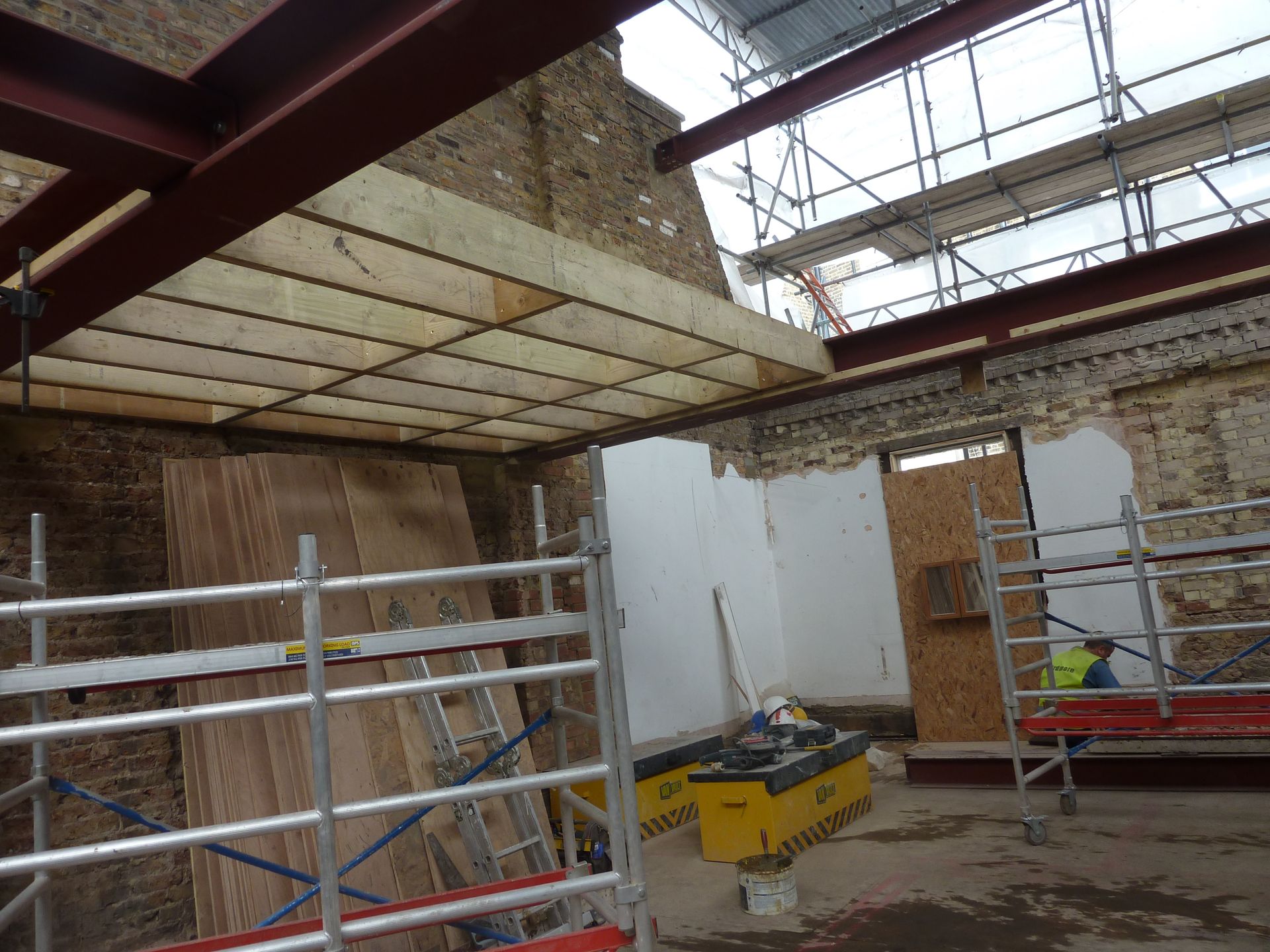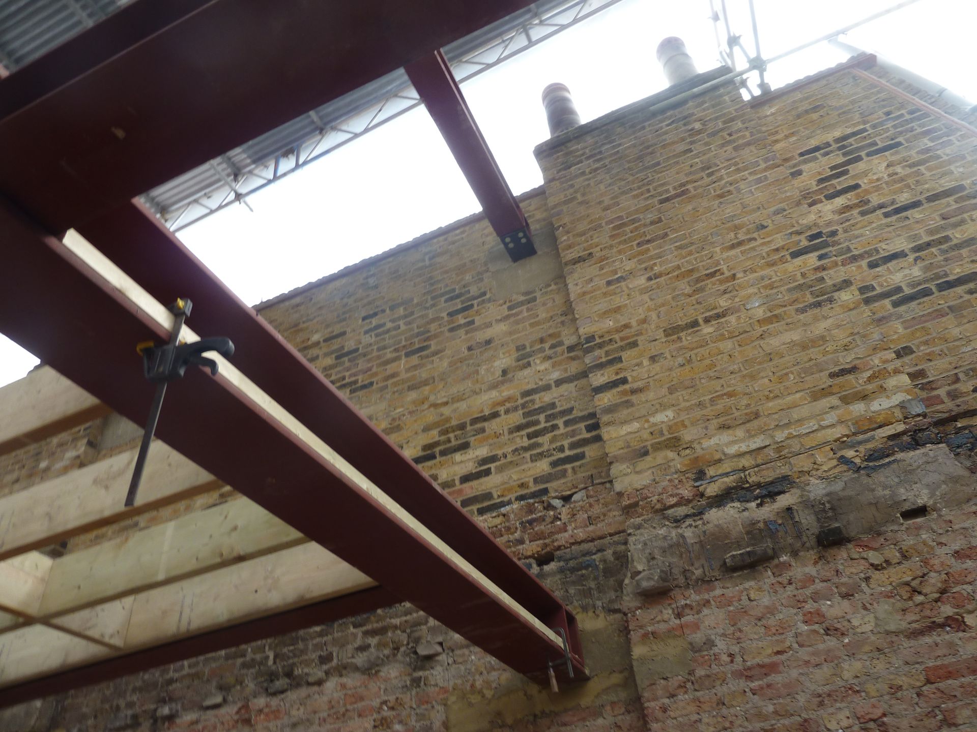 The client wanted to proceed with the structural works well in advance of any party wall awards being in place, and to that end MSJ developed a specially tailored temporary works and sequence of events specification. This included for MSJ's own specially designed beam end bearing brackets which allowed for the entire super structure to be constructed whilst being held on temporary props but not bearing into party walls.